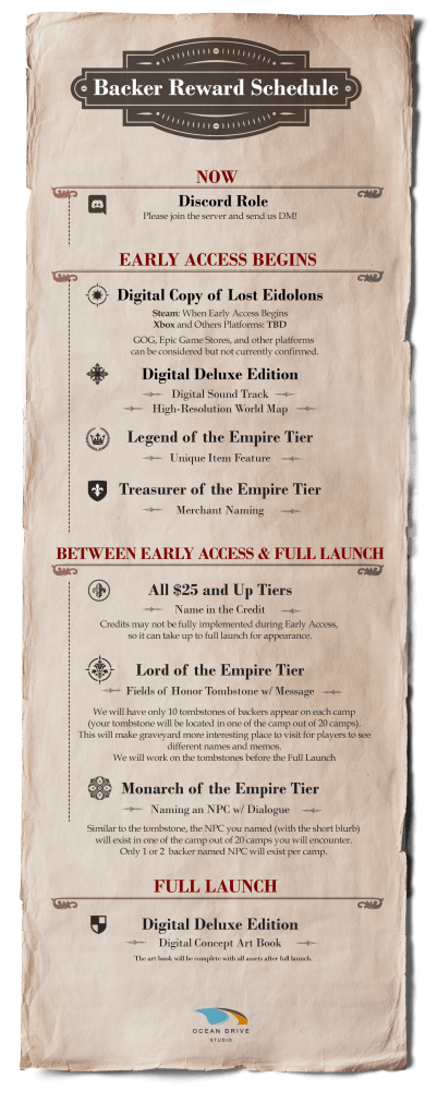 Today we’re talking a few campaign-related matters. As you can see by the title, we’re going over the 1) release timeline for Lost Eidolons, 2) potential limited run physical copy of the game, and 3) the fulfillment schedule for your backer rewards. To start, let’s go over the known and future timeline for the project.