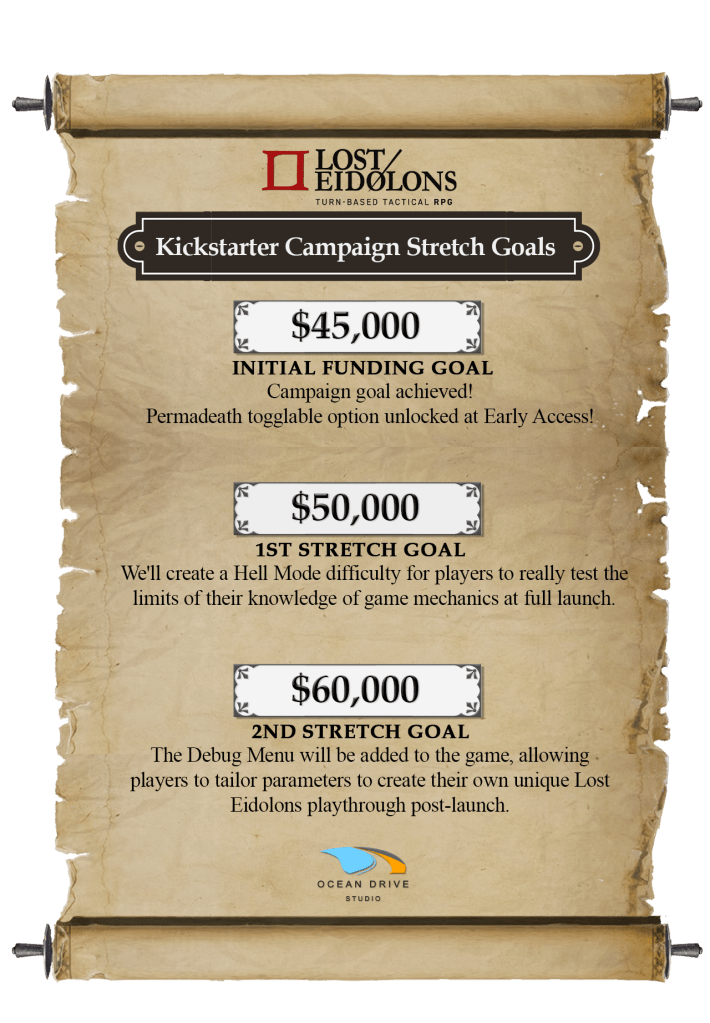 The final week is upon us. With just 4 days to go, our campaign is currently funded 92% by 806 backers! Thanks to our growing community’s support, we’re now on the cusp of reaching our campaign goal in its entirety. But you know, this campaign was never about raising funds, but rather was about creating a steady foundation of passionate gamers that wanted to help develop a new and exciting turn-based strategy RPG alongside us. What we mean by this is, even had the campaign not succeeded, Lost Eidolons would have been created regardless. However, thanks to the Kickstarter campaign and everyone’s support, we can immortalize early supporters within the game, as well as get to fund awesome stretch goal features that weren’t part of the base game.