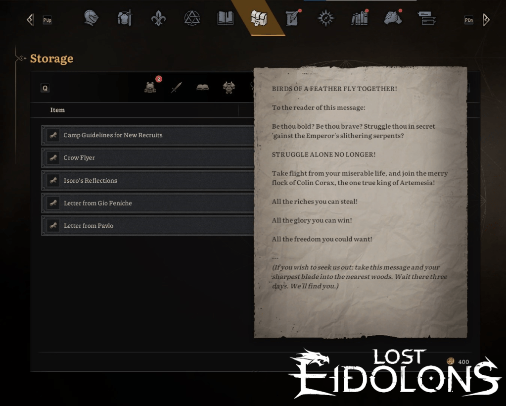 There are also around 70 in-game documents written by various characters, which you can find strewn about the game’s camp sections.